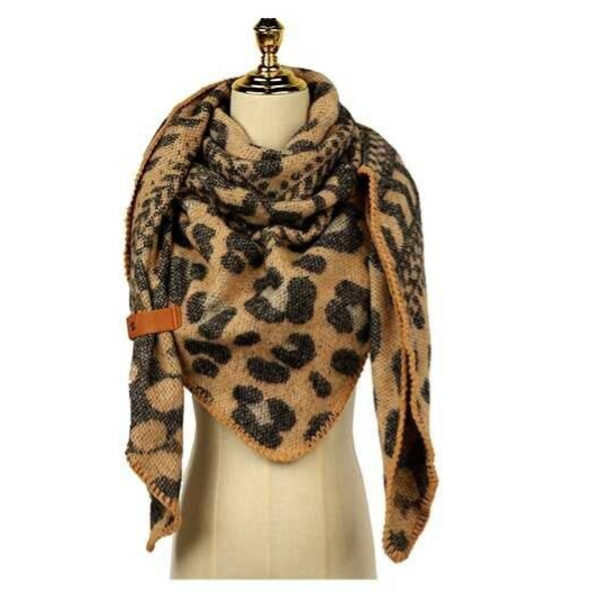 Unieke wintersjaal in driehoekige vorm met een moderne dierenprint.