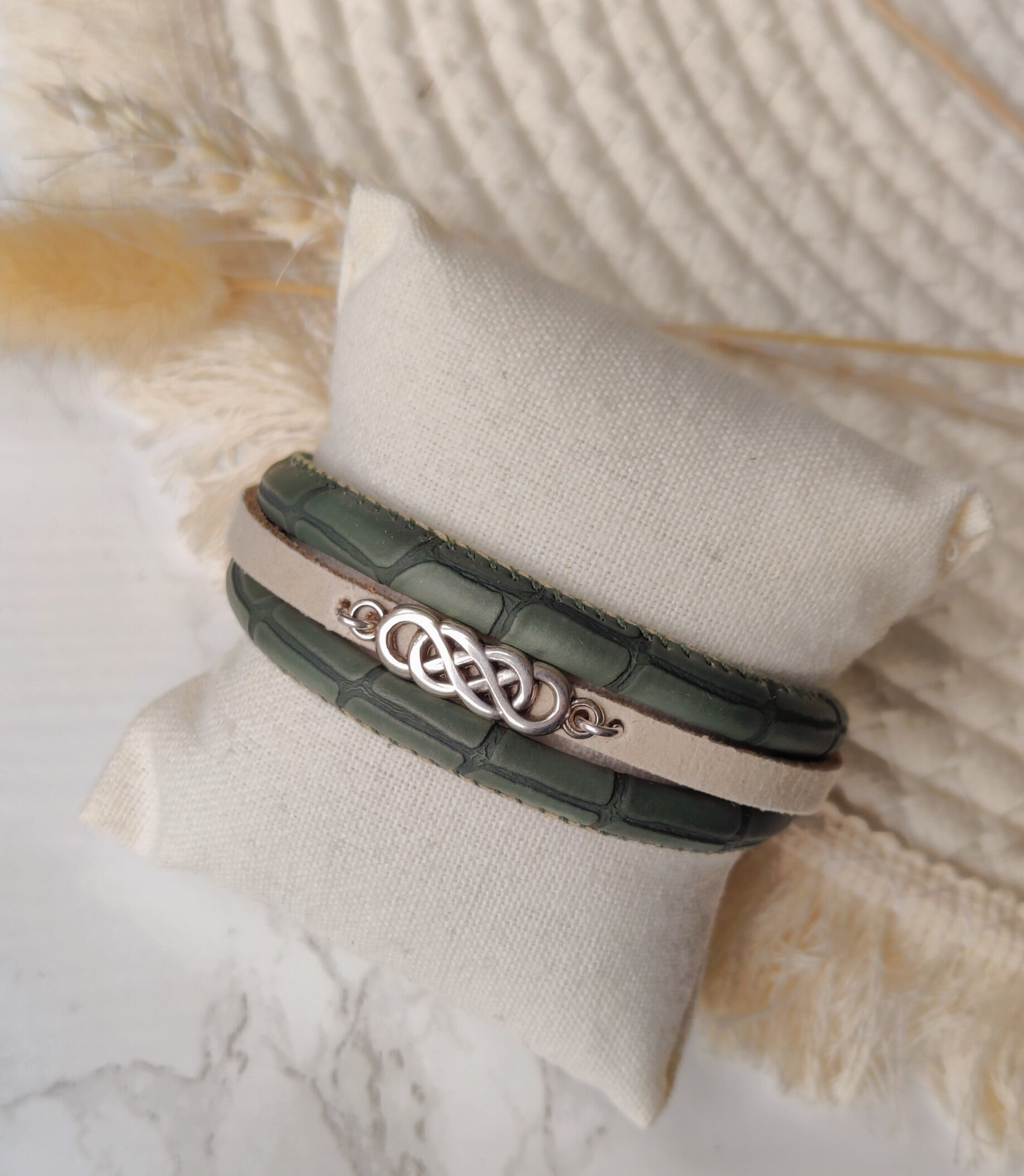 Armband | Leer SR - groen/beige