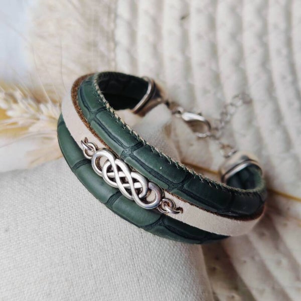Armband Camelia | Leer SR - groen