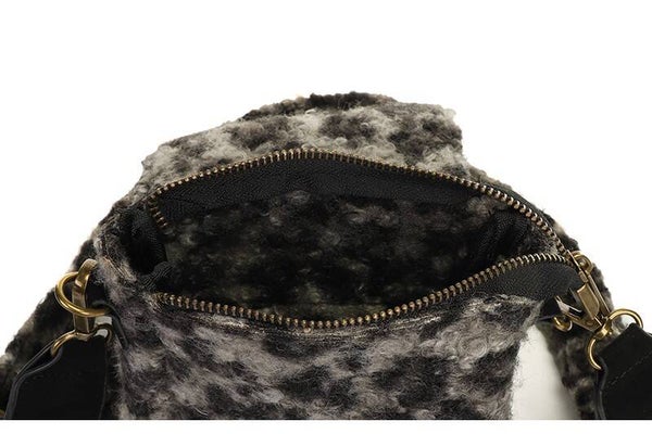 De verstelbare schouderband is voorzien van hetzelfde teddy stofje en maakt het helemaal af.