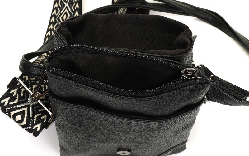 De flap is voorzien van een modieuze gesp als eyecatcher en kan met een magneetsluiting veilig worden vastgezet, waardoor het geheel netjes wordt afgesloten.
