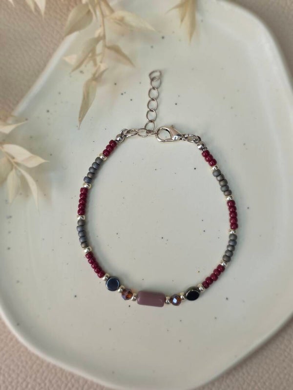 Kralen armband Miyuki Disc, Facet & Bugle - Burgundy