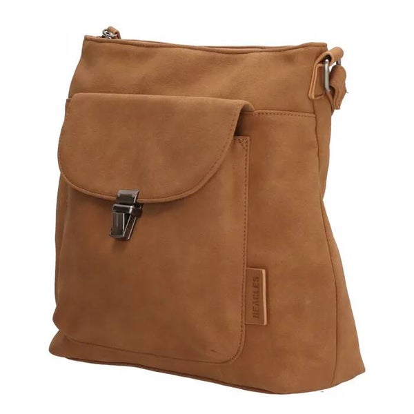 Arenas del RayKleur: camelMateriaal: binnenkant polyester / buitenkant PU-leerAfmeting: 27cm (h) x 29cm (b)Extra: de schouderband is in lengte verstelbaar