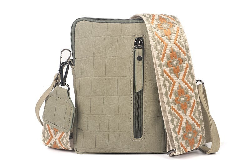 Dit stoere tasje wordt geleverd met 2 schouderbanden; een basis dunner bandje in een effen kleur en een unieke geweven schouderband met print.